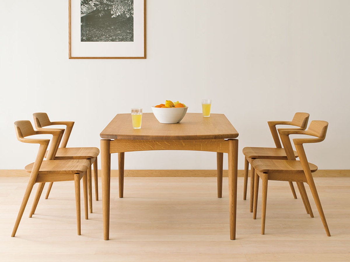 無垢材を削り出した肘部は手で触れる際に、つかみやすい形状になっています。セミアームタイプの為、椅子を大きく後ろに引かずスムーズな着座が可能です。