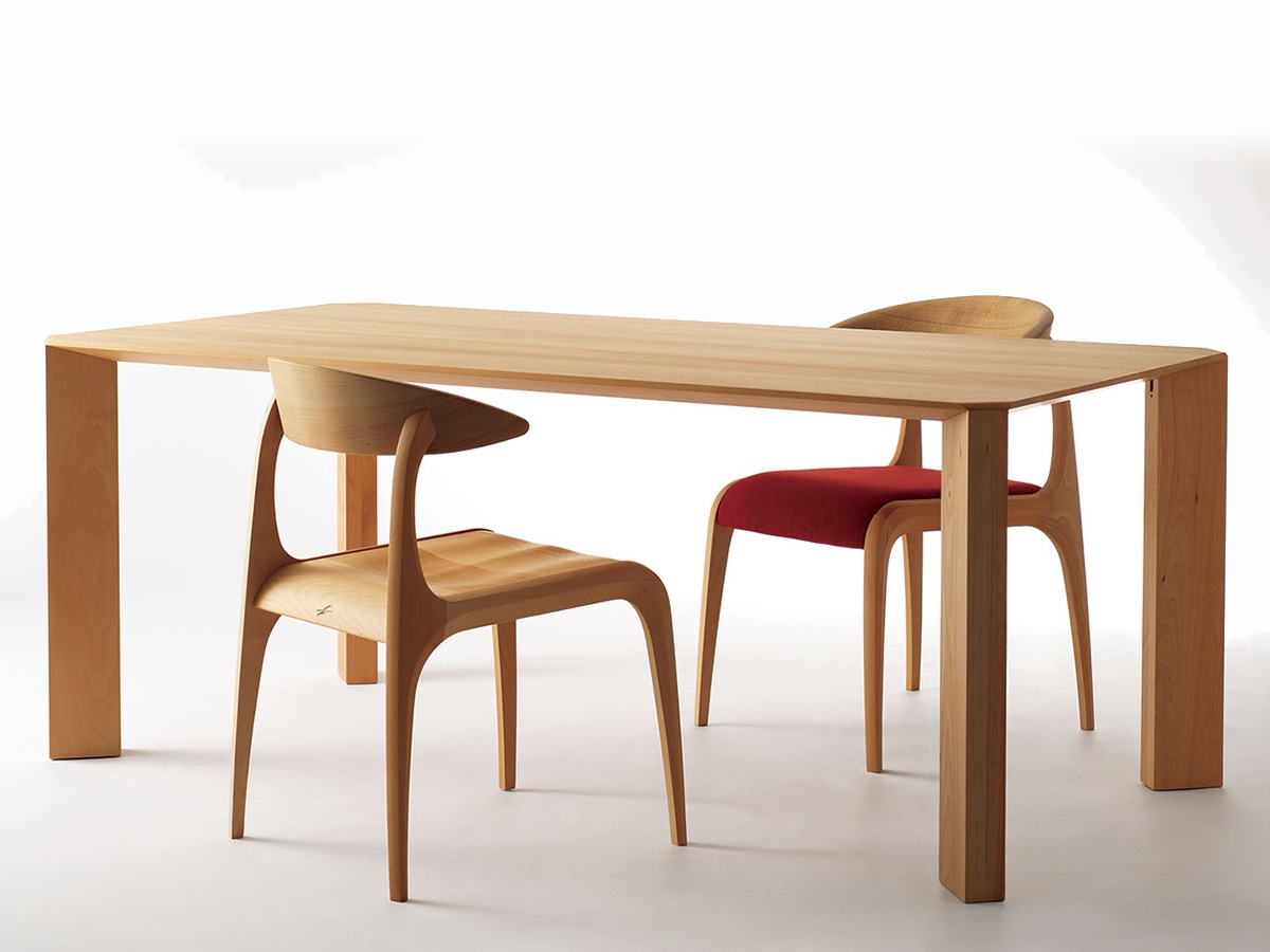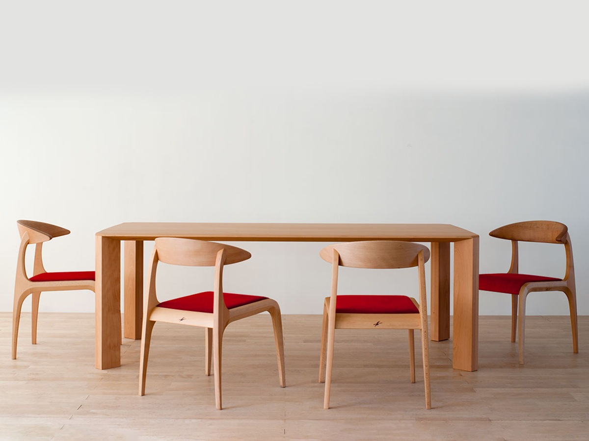 塊から削り出された美しく滑らかな彫刻的な造形はカーデザイナーであるKEN OKUYAMA氏によるもので、木製のチェアでありながらスタイリッシュさが感じられます。
