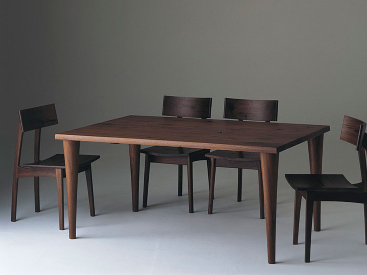 ウォルナットは、チーク、マホガニーと並んだ世界三大銘木の一つです。渋く上品で、落ち着いた色合いと重厚感のある杢目が美しく、ツヤや触り心地も抜群な高級材です。タンニンが多く含まれているため、使い込むうちに磨きがかかり、風合いを深めていきます。飛騨産業では北米産のブラックウォルナット材を使用しています。