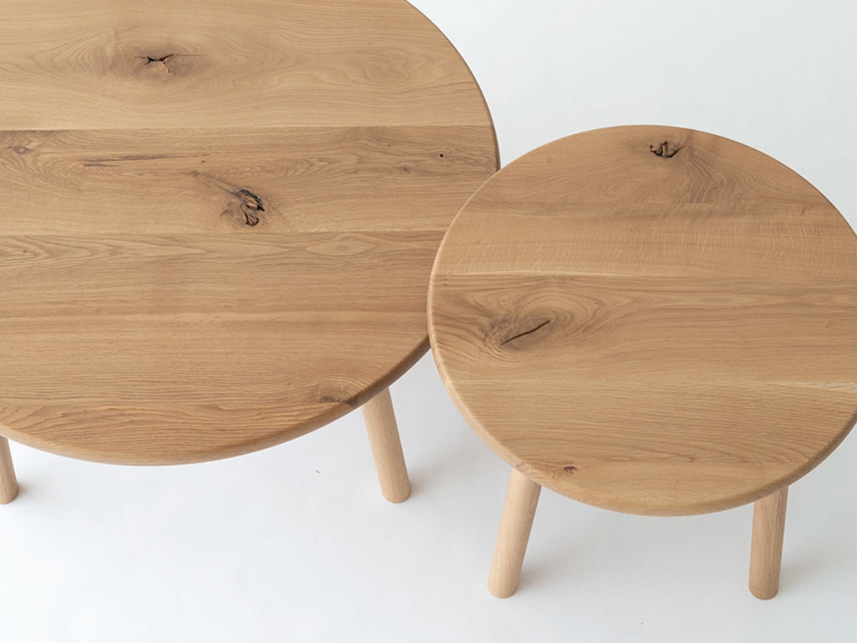 化粧合板などとは違い、天然木の木目や色味は様々です。 「木」と一言に言っても、その表情は様々。 例えば、一本の幹の中でも「心材」と呼ばれる幹の中心部は色が濃く、「辺材」と呼ばれる外側の部分は薄く、心材とは色が異なります。また、木は光合成をするために枝葉をたくさん伸ばすので「節」が現れたりもします。 飛騨産業ではこのような木材の様々な表情を活かした家具づくりを行っています。
