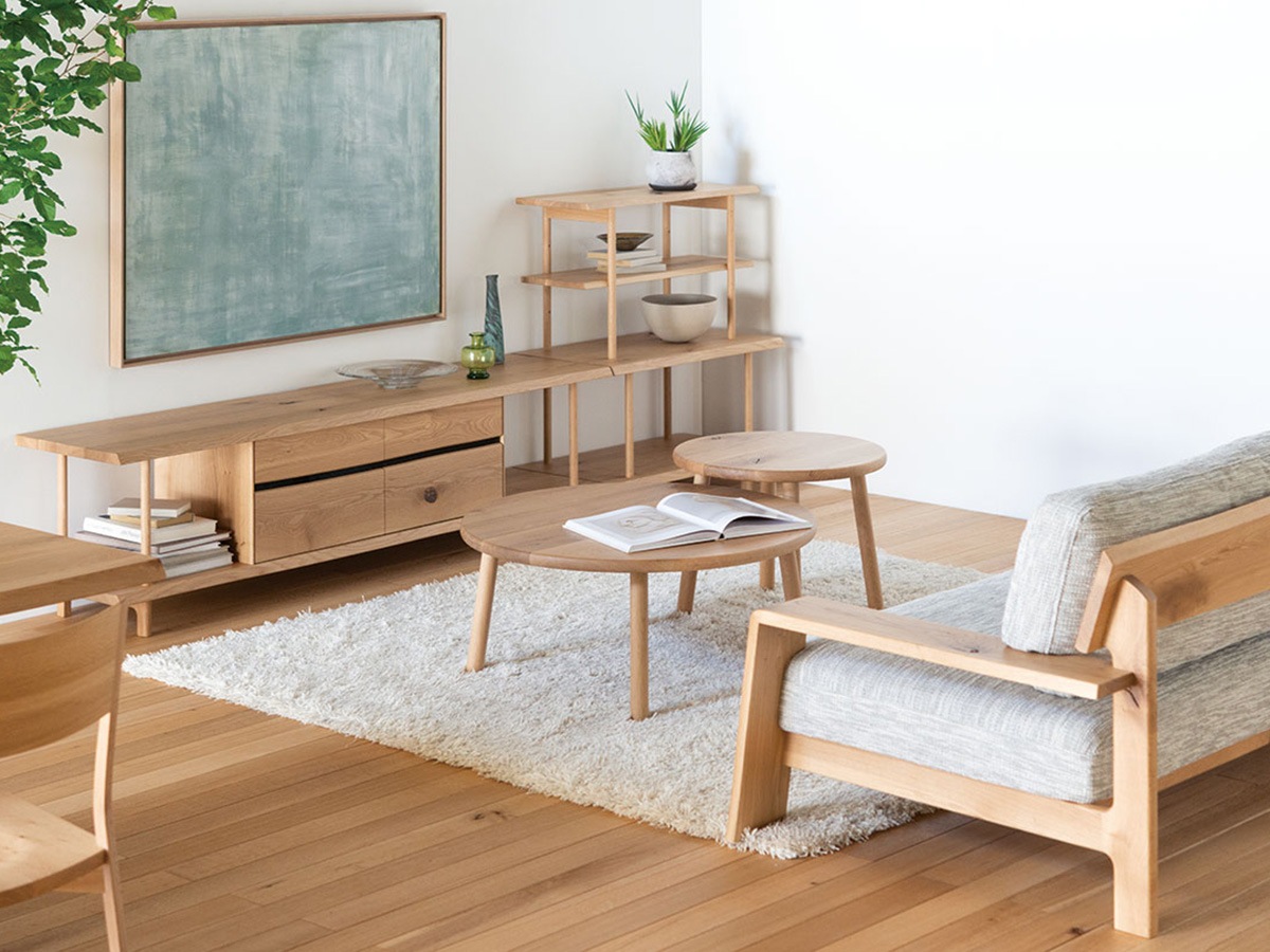 国産ナラ材を使用したナチュラルな風合いを持つ家具シリーズ。