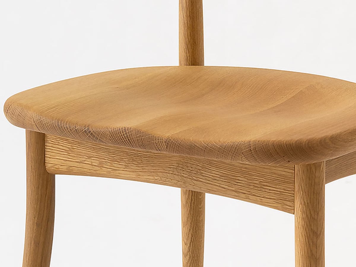 座面を立体的に削り、お尻の当たりが柔らかくなるように「座繰り加工」施しており、職人の手で丹念に磨き仕上げているため優しい座り心地で長時間座っていても疲れを感じにくいです。