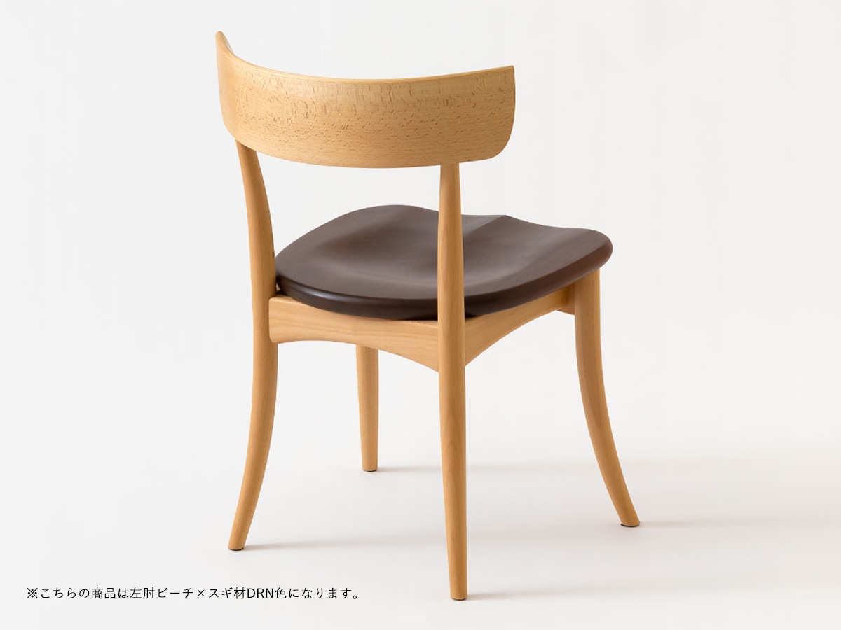 背板は飛騨の匠の加工技術である「曲木」を使用し、しっかりとした厚みのある天然木を曲げてぴったりと背中にフィットするように仕上げており、包み込まれるような座り心地を体感出来ます。