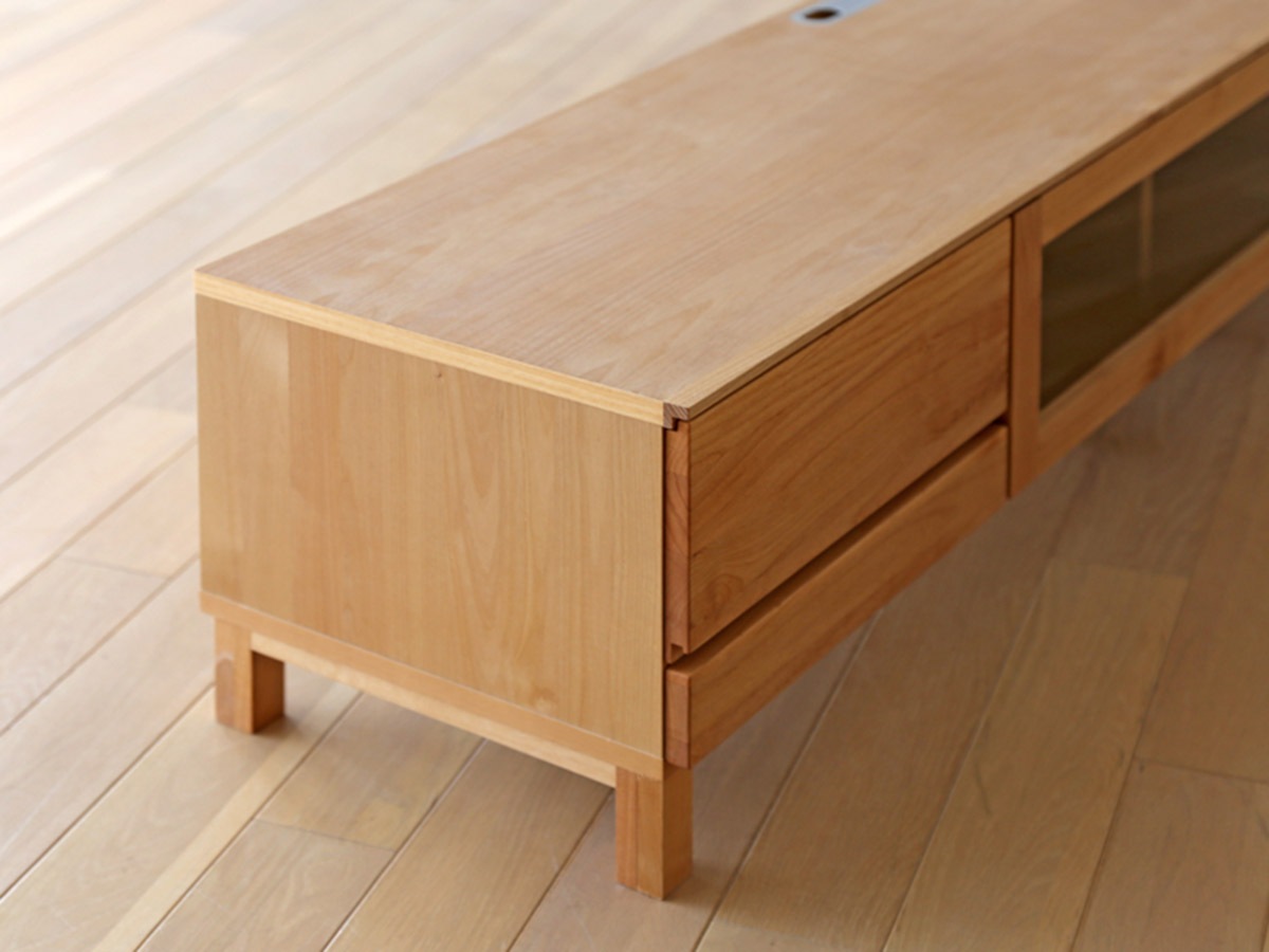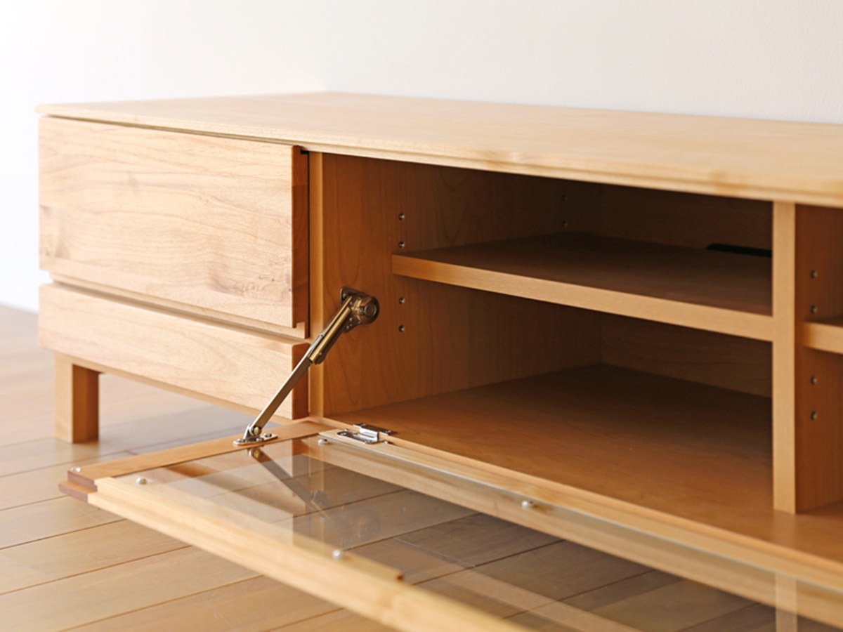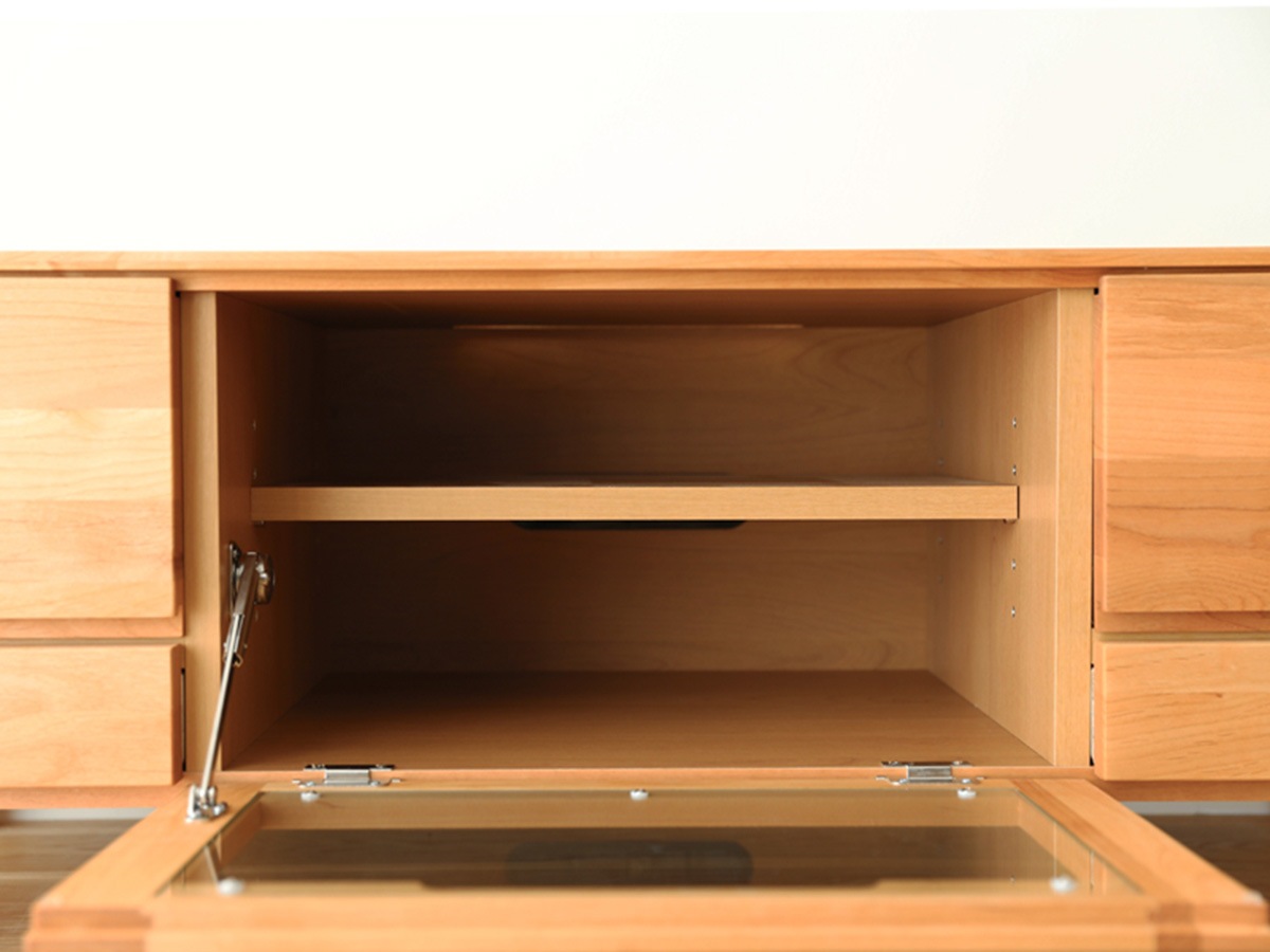 【素材】前板:アルダー無垢材;天板/側板/扉:アルダー突板;ガラス:強化ガラス