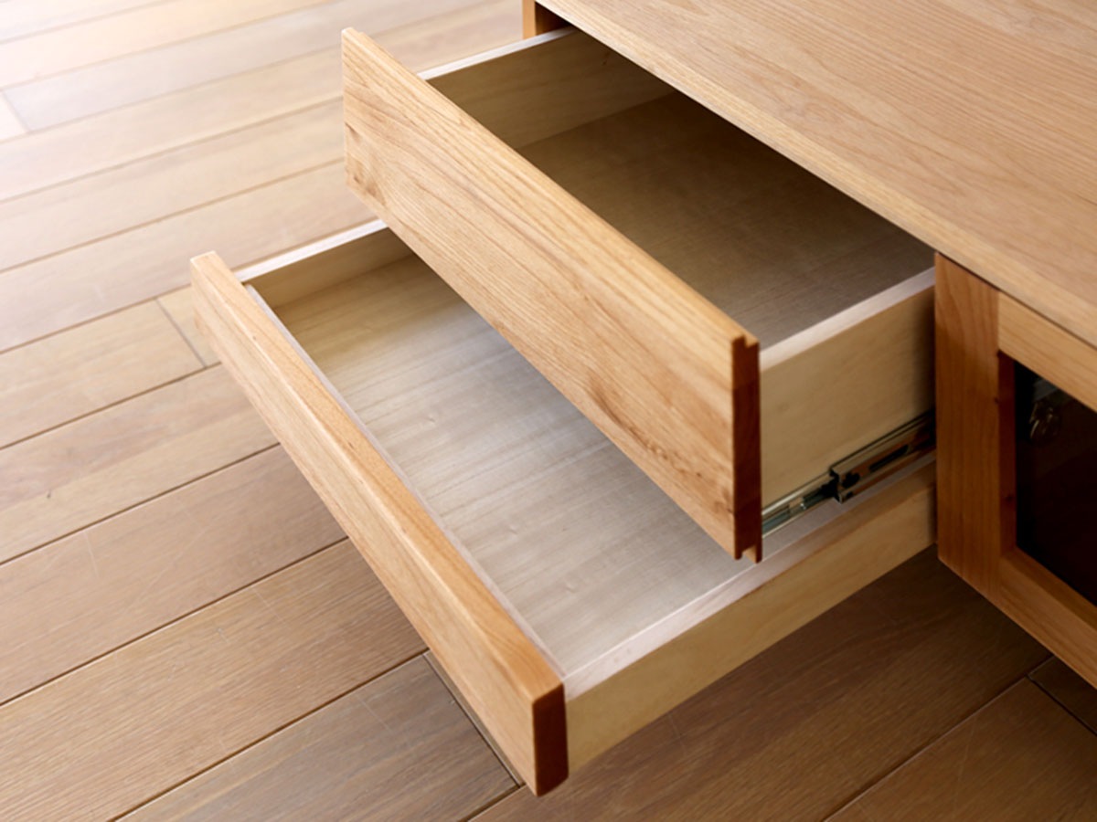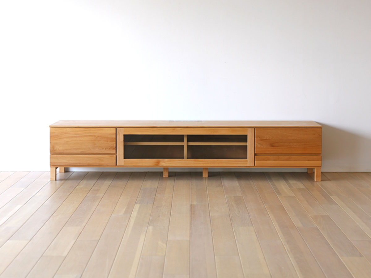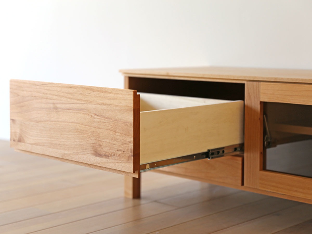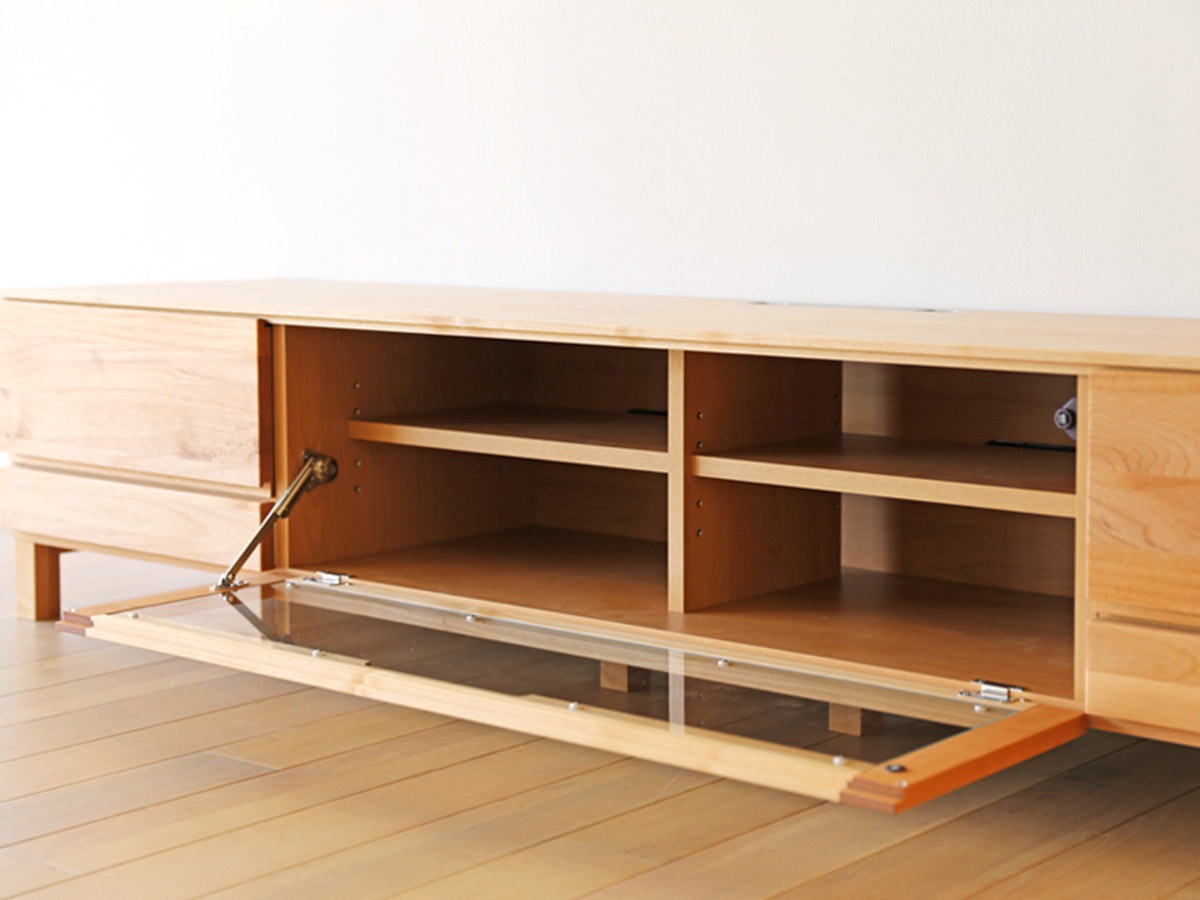 【素材】前板:アルダー無垢材;天板/側板/扉:アルダー突板;ガラス:強化ガラス