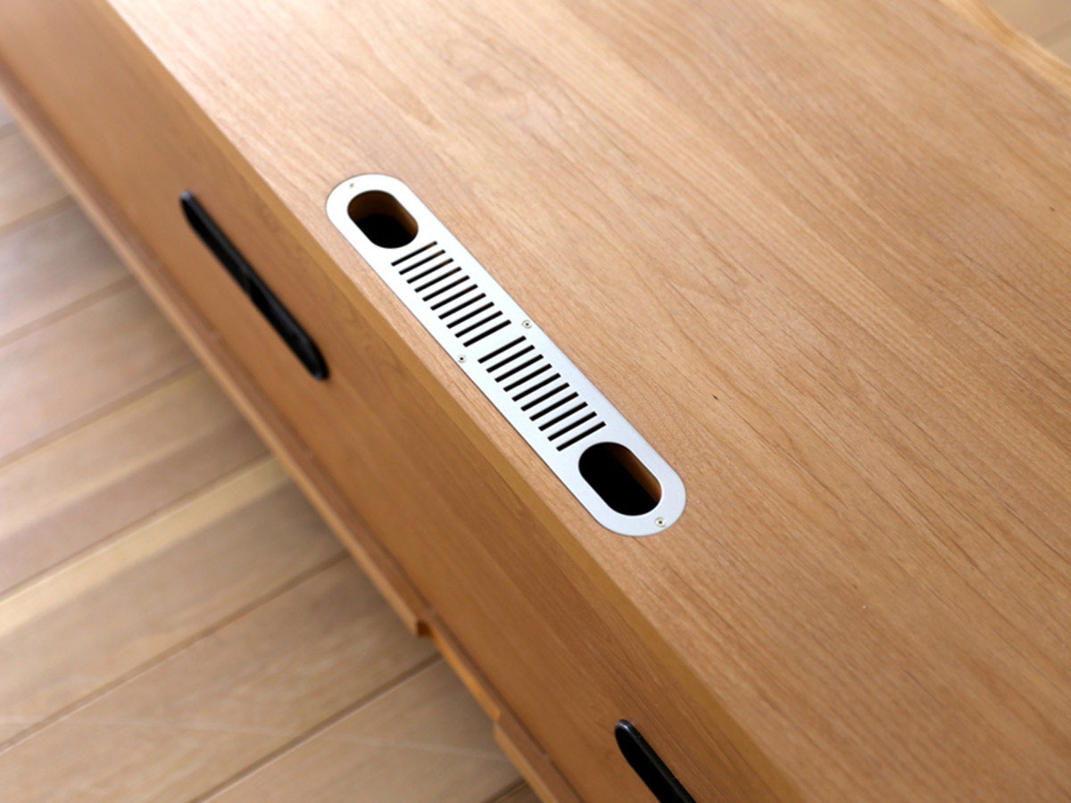 天然木は育った環境により、木の1本1本が違った風合いを持ち木目や色もさまざまです。材質の持つ個性により、色の違いが出る場合がありますがこれも天然木の持つ特徴です。さらに時が経つにつれて色の深みも増し、風格と気品が漂ってまいります。